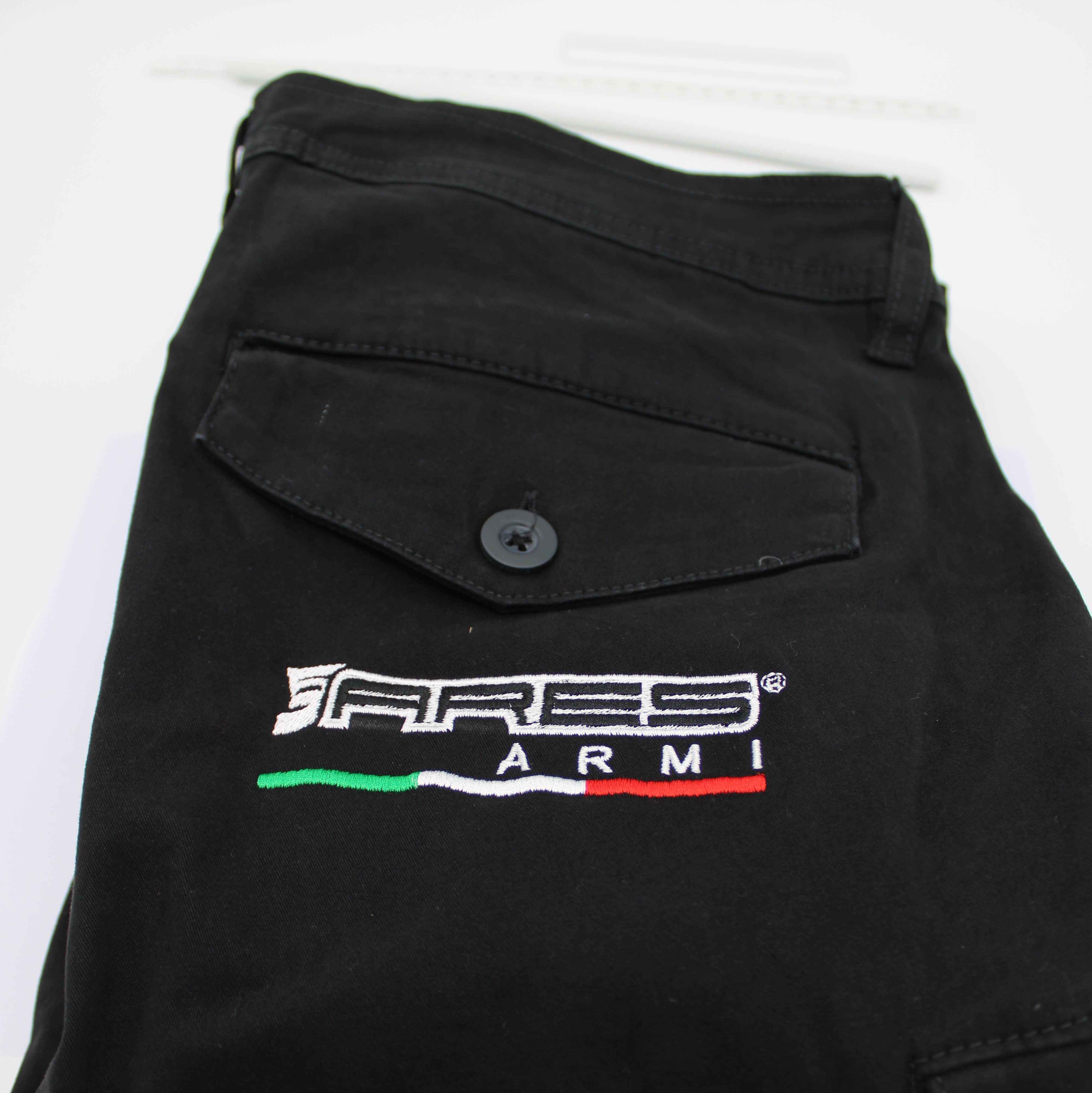 Pantaloni ARES cargo, comodi e non troppo larghi, con tasche laterali, molle e sulle caviglie e zip anteriore. Adatti a qualsiasi tipo di utilizzo, prevalentemente adatti per l'autunno/inverno, con ricami loghi ARES e passanti per cinta ribattuti. A detta di molti clienti, prodotto soddisfacente !!